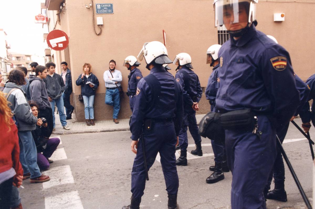 A la imatge més antiga de les dues que es publiquen a l’edició d’avui, que és de 1997, any del llançament de la sonda Cassini-Huygens cap a Saturn, hi ha diverses escenes. En una, la que es veu més, hi ha policies que volien impedir que algú destorbés el desallotjament d’un edifici ocupat. A l’altra, simpatitzants del moviment esperant esdeveniments. I, a la darrera, periodistes que cobrien la notícia, també esperant què podia succeir.