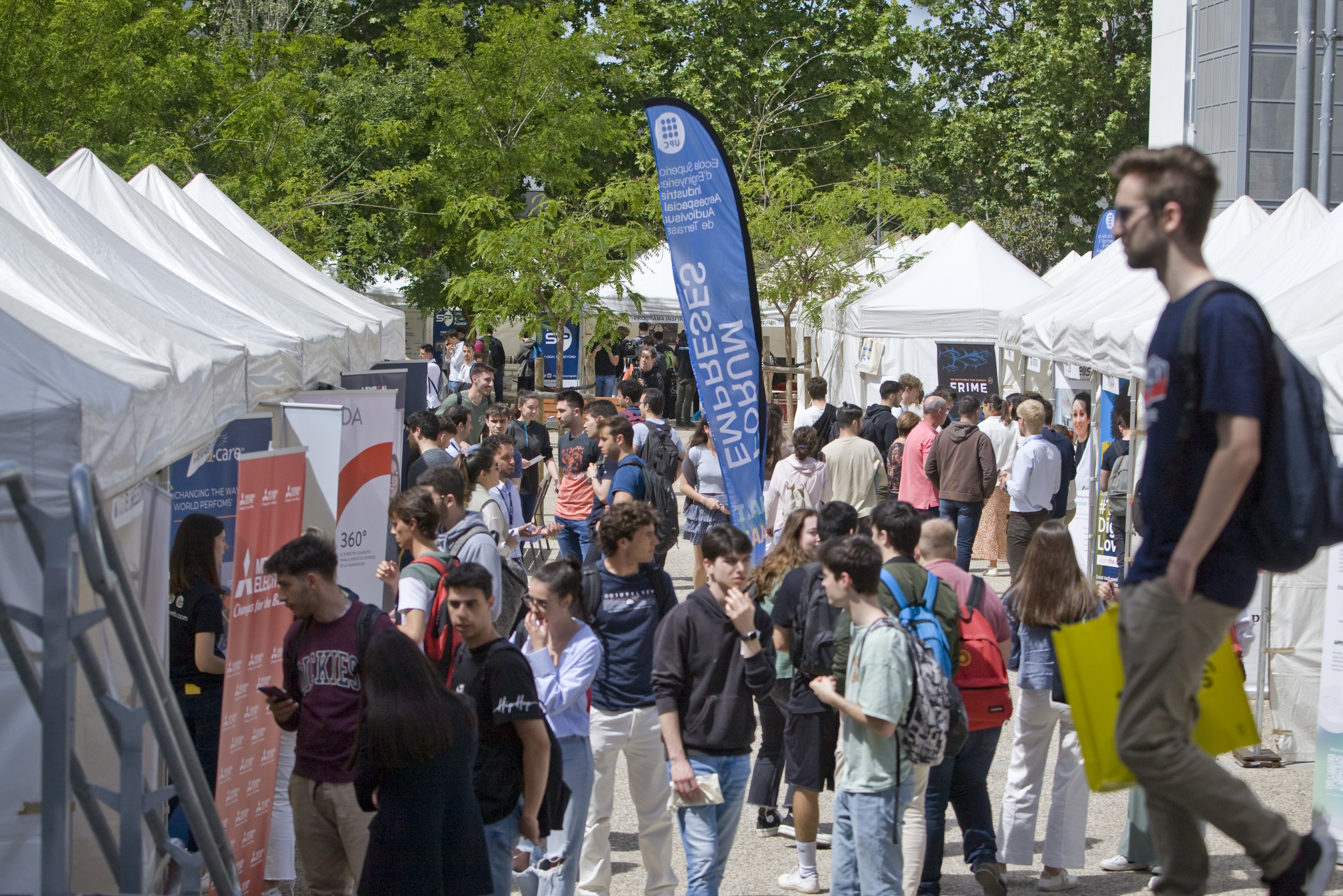 El Fòrum d’Empreses de l’Eseiaat és una portunitat perquè els universitaris tinguin un primer contacte amb el món empresarial. Hi acudeixen tant estudiant de cursos avançats que busquen pràctiques o fins i tot un primer contracte laboral com d’altres que fa menys que han començat la seva formació universitària i que ja volen conèixer quines empreses hi ha en l’entorn de l’enginyeria.